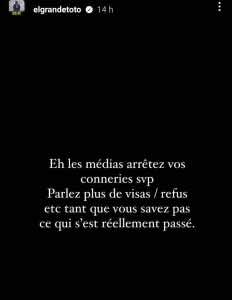وطالب “طوطو” في تدوينة عبر خاصية ستوري على صفحته الرسمية على تطبيق “إنستغرام”، بالكف عن تداول خبر عدم حصوله على تأشيرة فرنسا، في الوقت لم يتم الكشف عن أسباب ذلك.