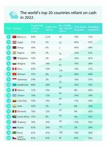 وفي مايلي القائمة الكاملة لأكثر 20 دولة تعتمد على النقد خلال سنة 2022: