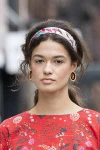 وظهرت عارضة الأزياء الممثلة لدار “Snow Xue Gao” بتسريحة ذيل الحصان الفوضوية مع غرة مثبتة بالسكارف ذي الألوان الزاهية، وتعتبر من تسريحات الشعر التي يمكن اعتمادها يوميا، لكونها مريحة وتمنح المرأة إطلالة بسيطة وأنيقة.