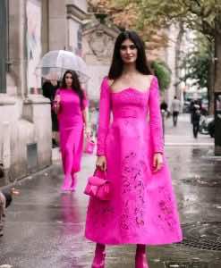 أما كايلي جينر، فقد اعتمدت في أسبوع الموضة بباريس، على فستان باللون البيج، ذي أكمام طويلة على شكل فراشة، بينما ظهرت كيم كارديشيان بفستان أسود أنيق مرصع، حدد شكل جسدها وأبرزه.