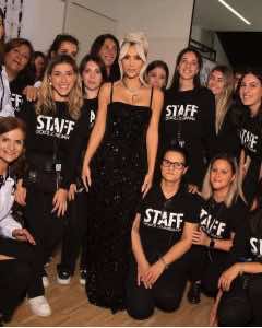 من جانبها، تألقت إليسا بفستان قصير ذهبي، ومعطف وحذاء باللون الأسود ثم جوارب نيلون بنفس اللون، في حين ظهرت مي عمر بفستان أسود مكشوف الكتفين من Vlexandre Vauthier.