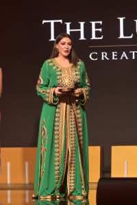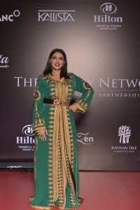 وتألقت الفنانة الشهيرة خلال الحفل، بقفطان مغربي فخم أخضر ملكي على البساط الأحمر، من توقيع المصممة هند لمطيري، مع مكياج ساحر من إبداع روشي ميكاب.