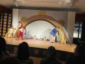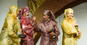 وأبدع طارق الربح الذي أشرف على الملابس، في اختيار زي خفيف يجمع بين الوفاء للباس التقليدي المغربي (زي المشخصات) وبين الإخلاص لمسرح البساط، خاصة في الرقصة الهوارية التي تميزت بتكامل تام بين الأداء الجسدي والقفطان المغربي.