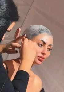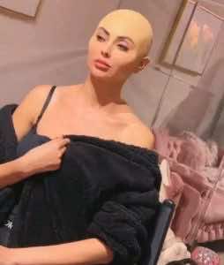 وظهرت مريم حسين في مجموعة صور وهي ترتدي “باروكة” صلعاء، مع حرصها على الظهور بشكل جميل من خلال تطبيق الكثير من الماكياج والفوتوشوب.