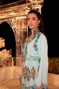 وتألقت صوفيا سعيدي بالقفطان المغربي السماوي اللون المطرز بالزمرد، من تصميم إيمان التدلاوي، فيما تزينت بأقراط من الذهب والألماس من “Paraiba”، حيث تزينت بخاتم ماسي إلى جانب خاتم زفافها الثمين المكون من ثمانية ماسات نقية من “Harry Winston”، كما بَدت بإطلالة ملكية في فستانها الأبيض الذي صُمم على يد “بنينا توناي”، الذي اهتم بتفاصيل كبار مصممين الأزياء.