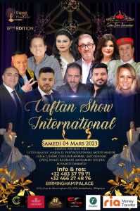 تنظم جمعية “أمل بلا حدود”, بمناسبة الاحتفاء بعيد المرأة، الذي يصادف 8 من شهر مارس، النسخة السادسة من معرض القفطان الدولي Caftan Show” “international، بمشاركة نخبة من نجوم الأغنية المغربية، وذلك في الرابع من شهر مارس القادم، بمدينة أندرليخت البلجيكية.