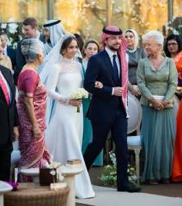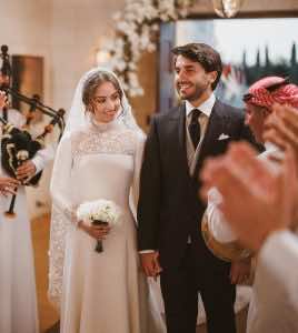 تألقت الأميرة الأردنية إيمان، كبرى بنات الملك الأردني، عبد الله الثاني بن الحسين، في يوم زفافها من رجل الأعمال الفنزويلي، جميل ألكسندر ثيرميوتيس، الذي أقيم يوم أمس الأحد، بفستان أبيض ناعم وبسيط جدا، ووشاح من الدانتيل مزين بالورود.