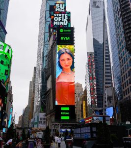 وآخر الفنانات اللواتي ظهرن على واجهة إحدى البنايات الشاهقة بالساحة الشهيرة، الفنانة أسماء لمنور، التي اختيرت لتكون فنانة شهر غشت لمنصة “سبوتيفاي” وسفيرة لبرنامج “إكوال” عربية، تقديرا لأعمالها الفنية.
